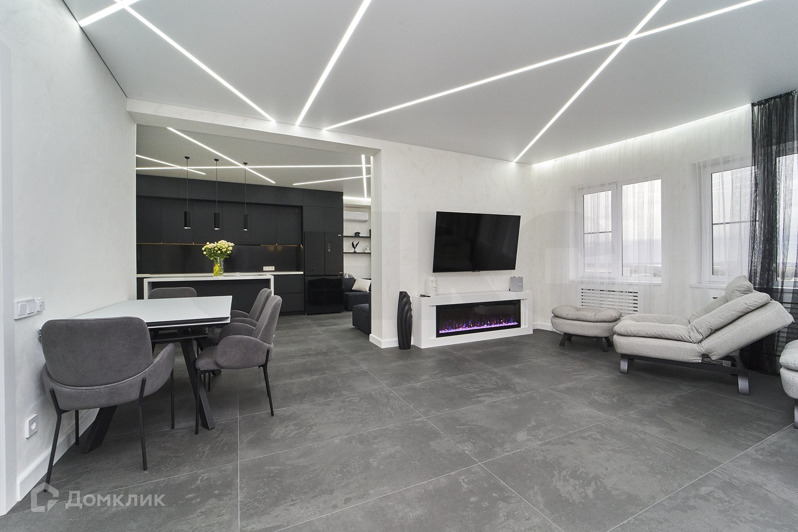 В квартире выполнен ремонт, все абсолютно новое и дорогое. Теплый пол по всей квартире, что добавляет уюта и комфорта. Очень много света, основного и дополнительного. Изюминка данной квартиры - это камин электрический. Вид из окна просто завораживает, так как рядом много частного сектора, плюс высокий этаж с панорамными окнами, то открываются самые красивые виды. Стадион и парк Краснодар у Вас как на ладони.