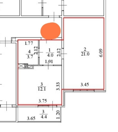 Общая площадь 40.8 м2