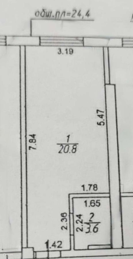 Общая площадь 24.4 м2