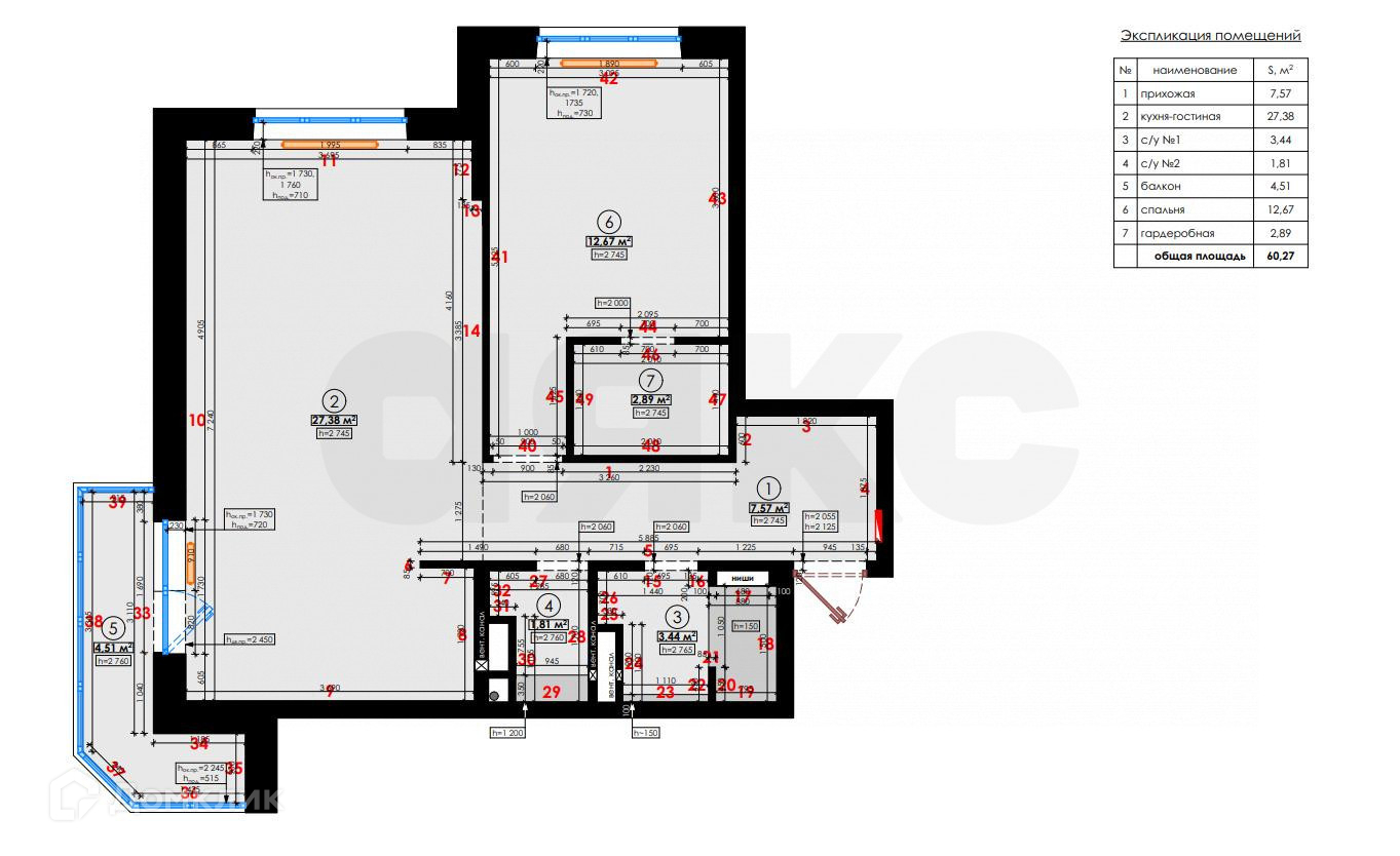 Общая площадь 60 м2