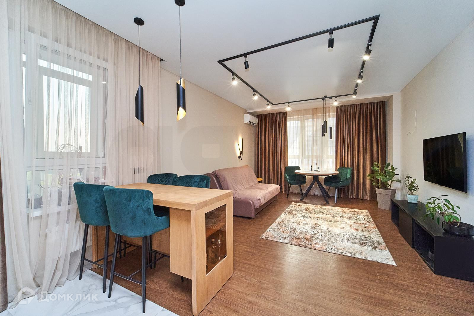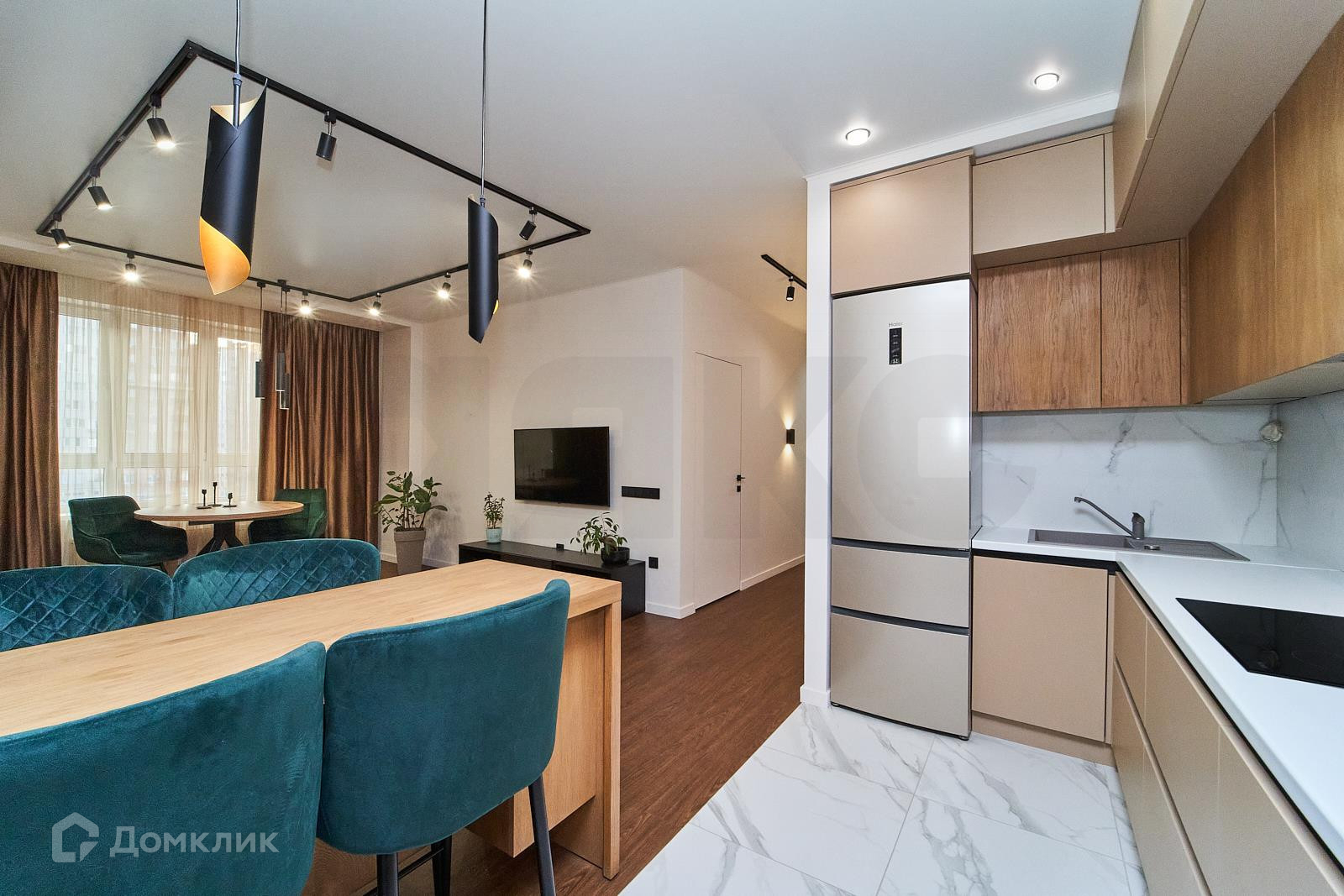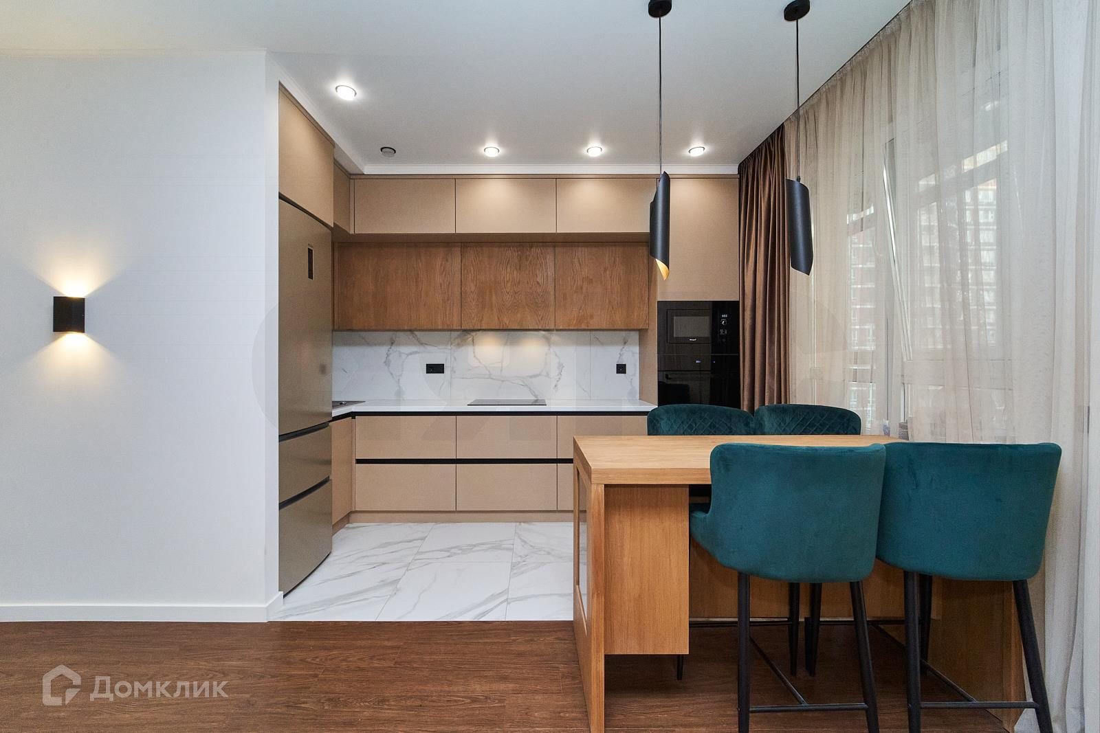 В квартире выполнен дизайнерский ремонт. Использованы дорогостоящие материалы высокого качества. Дорогостоящая мебель и техника. Все гармонично, в мягких тонах, что создает максимально комфортную атмосферу уюта. Очень современная, стильная квартира!