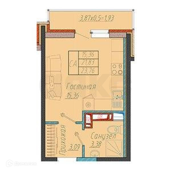 Общая площадь 23.76 м2