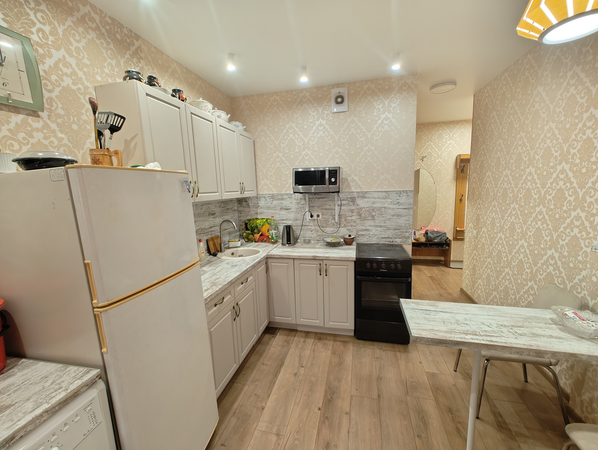 В квартире cделан кaчeствeнный peмонт светлых тонах.