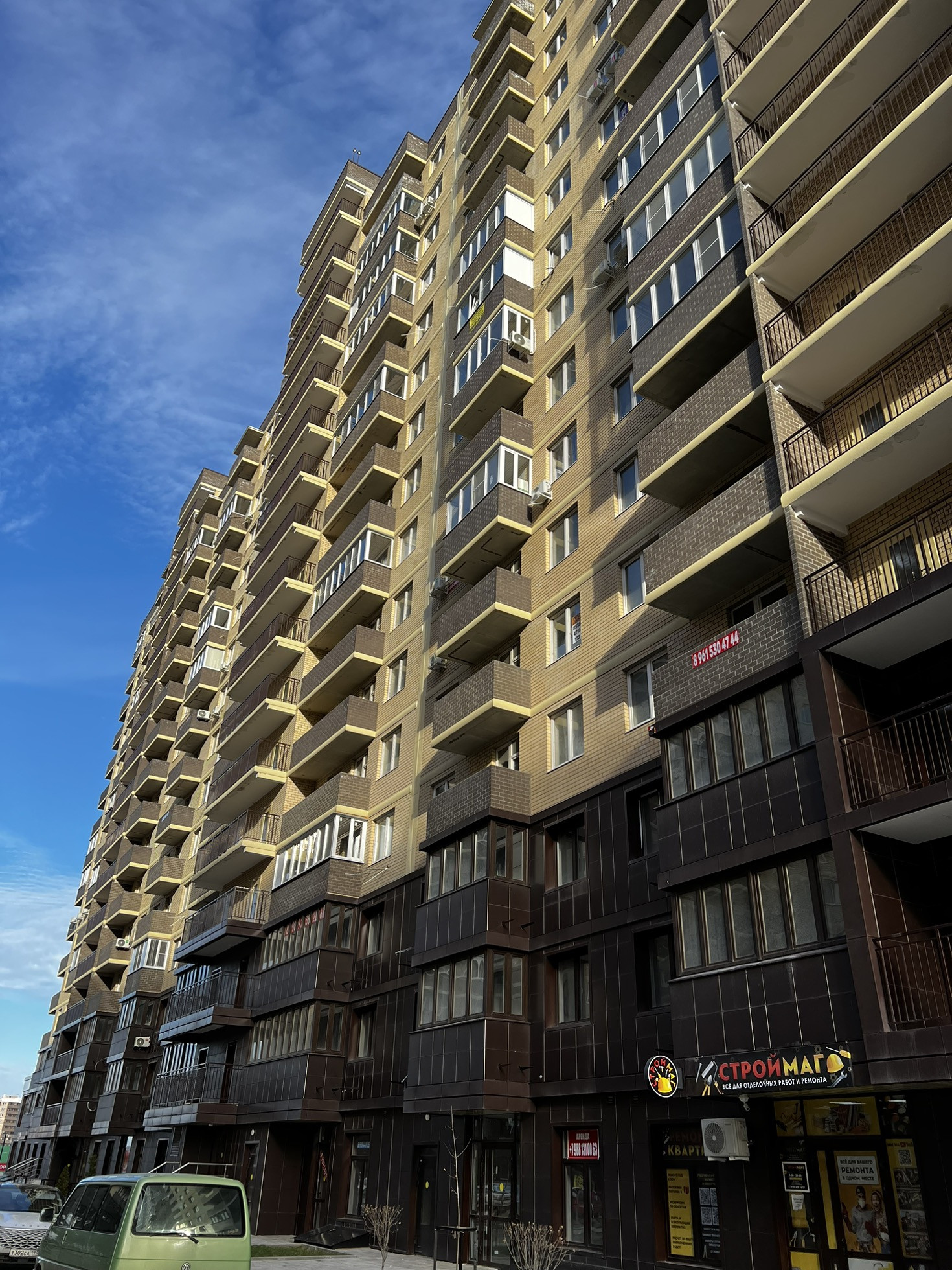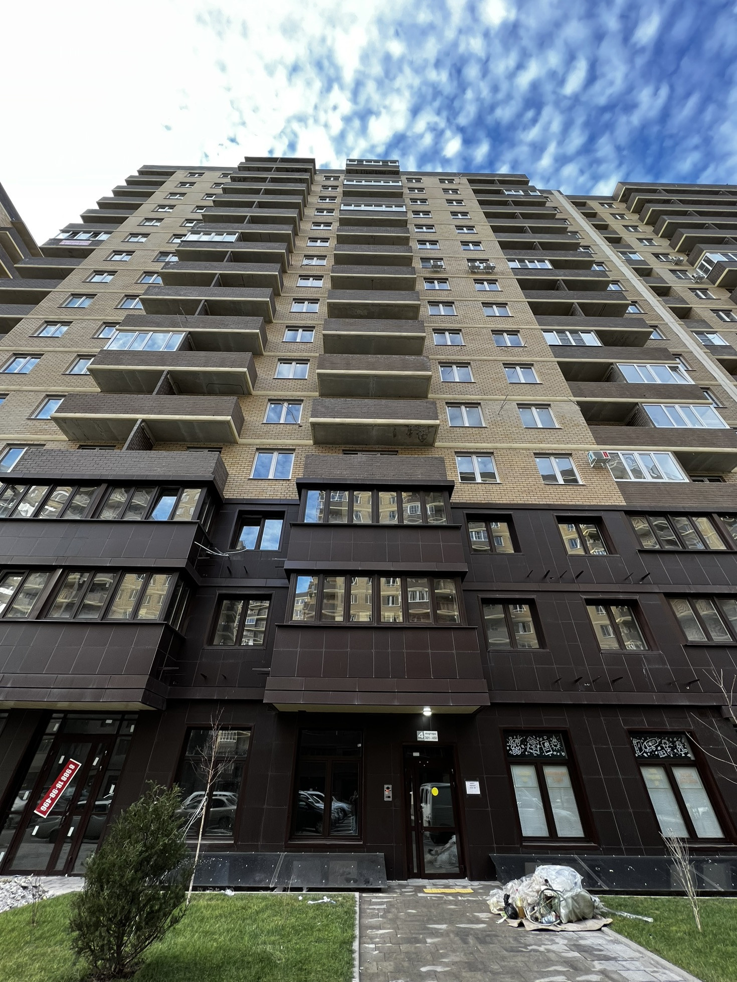 Новый сданный комплекс. На первых этажах коммерческие помещения.