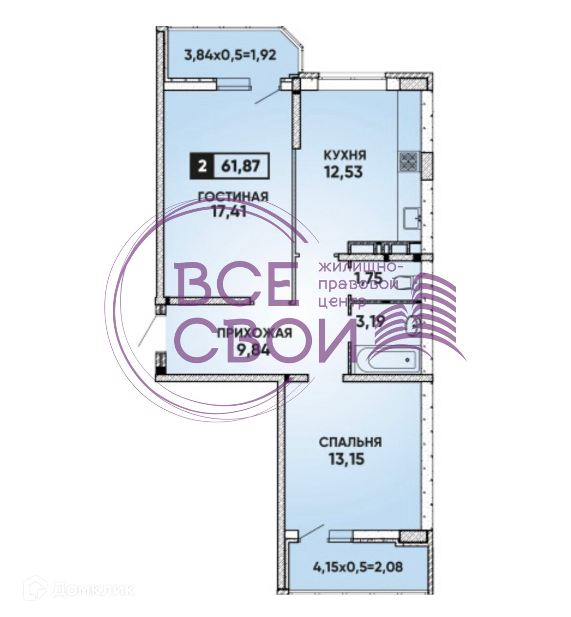 Общая площадь 62 м2