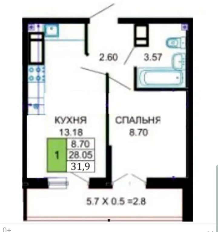 Балкон, лоджия 1 балкон