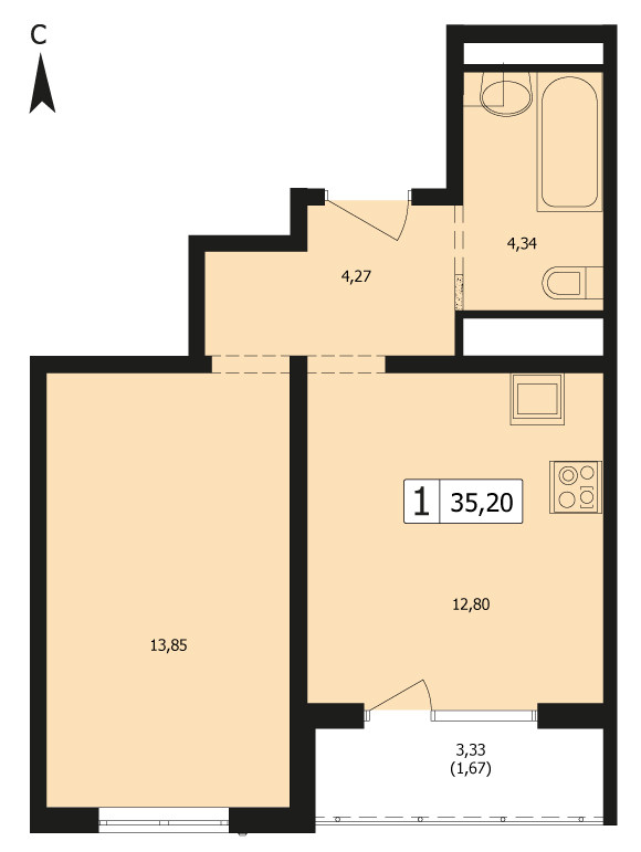 Общая площадь 35.2 м2