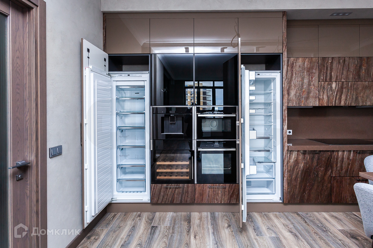 В кухне расположены холодильник фирмы Bosch, морозильник, встроенная посудомоечная машина Bosch, раковина и смеситель из Германии. Встроенный блок в кухне содержит всю технику NEF, включая встроенную кофе машину, подогревы для чашек, винный шкаф на 15 бутылок, встроенную микроволновку и встроенный духовой шкаф. На столешнице установлена большая электрическая плита фирмы NEF.