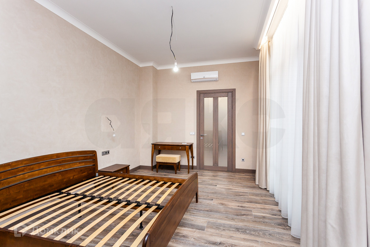 Высота потолков в квартире составляет 3,15 метра, а карнизы установлены над всеми окнами. Электрические карнизы управляются с пульта дистанционного управления. В каждой комнате установлен инверторный кондиционер.