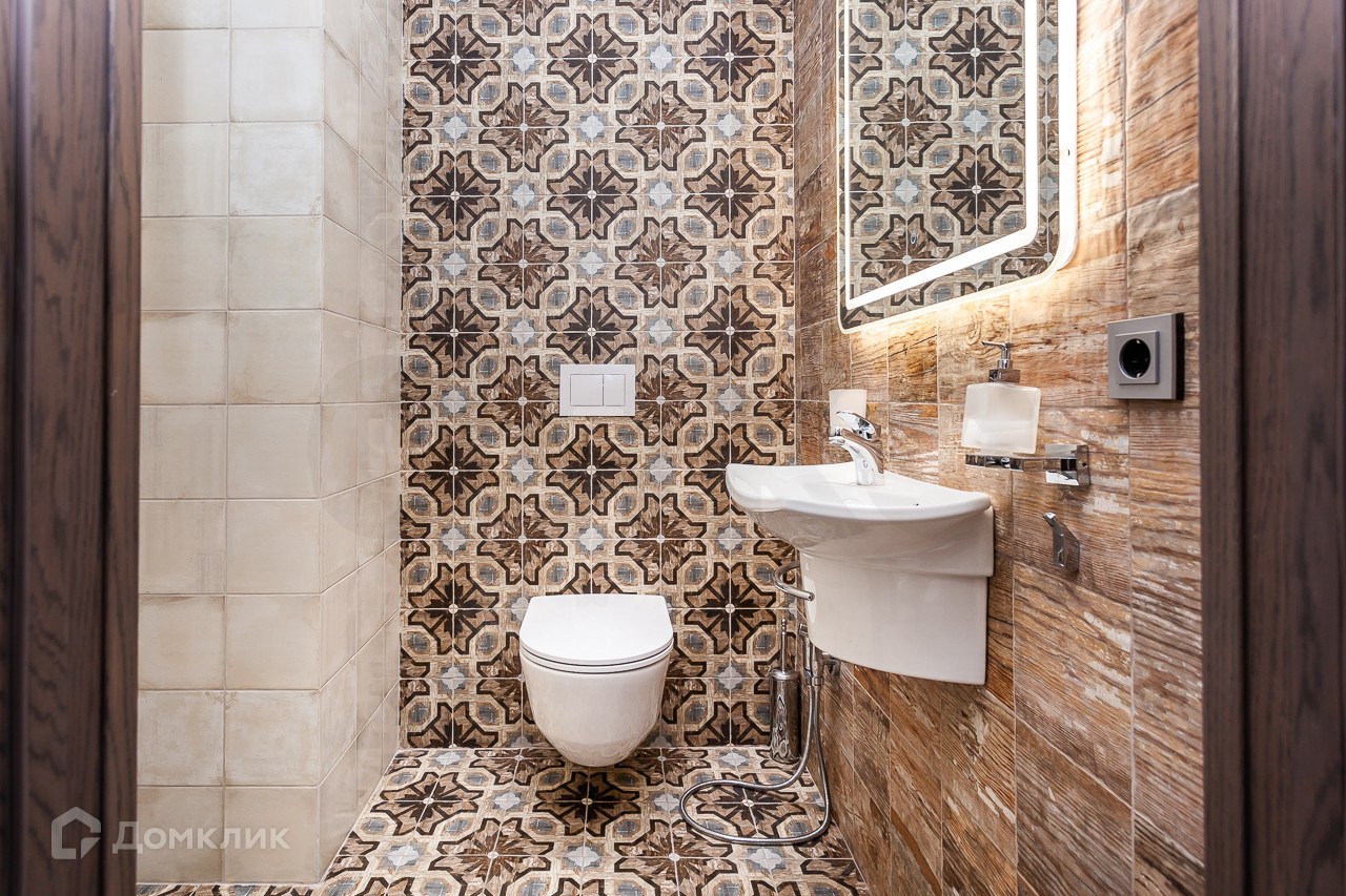 В сантехнической комнате выведено все для стиральной машины, установлен подвесной унитаз, мойка, кафель испанский. Также установлен бойлер на 80 литров.