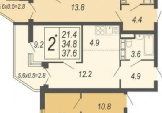 Общая площадь 37.6 м2
