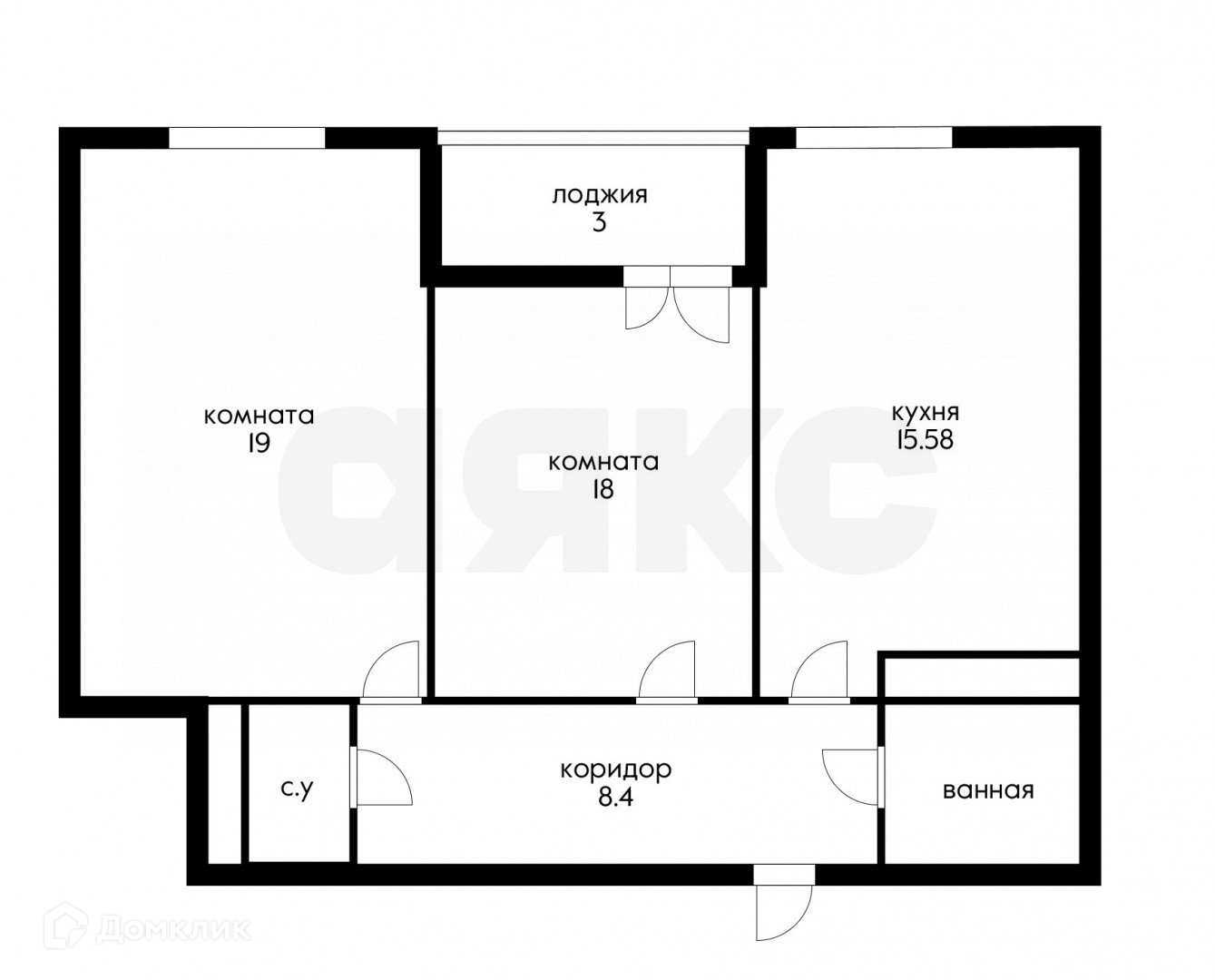Общая площадь 61.8 м2