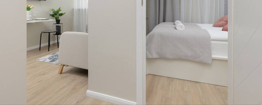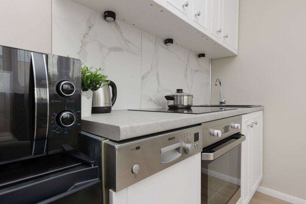 Квартира оборудована всем необходимым для комфортного проживания. Отлично оснащенная кухня со встроенной техникой делает готовку удобной и приятной.