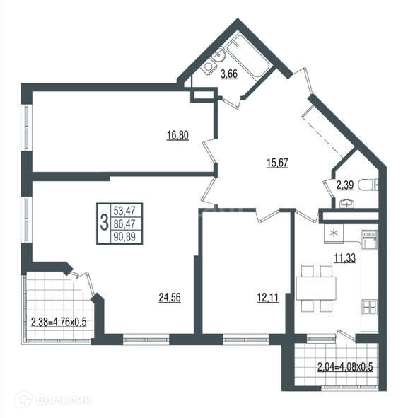 Сама квартира с просторной планировкой. Три отдельные комнаты и кухня, а так же две лоджии.