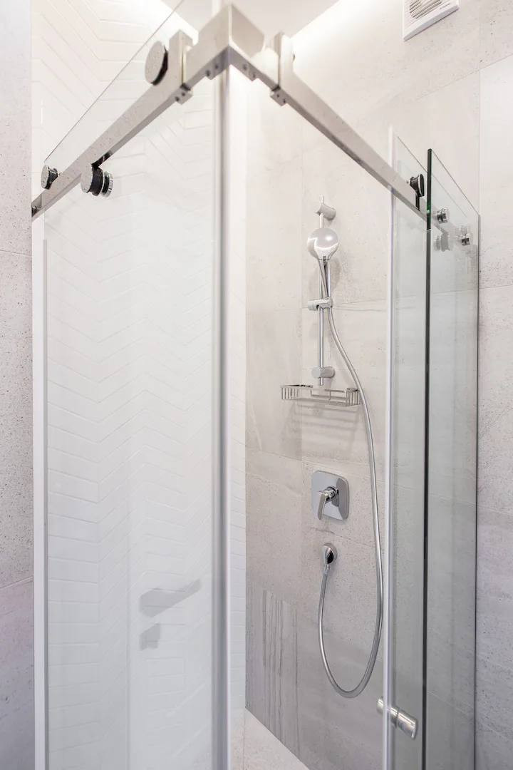 Студия оформлена современным дизайном. Безупречно обустроенная ванная комната с современными сантехническими удобствами, включая душевую кабину и умывальник.