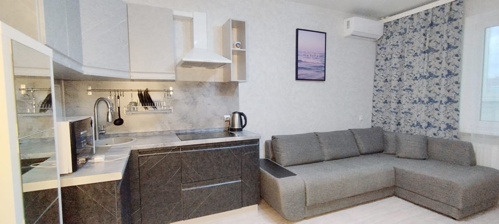 Окна на восточную сторону, очень  уютная и теплая. Полностью укомплектована мебелью и техникой, установлена сплит-система.