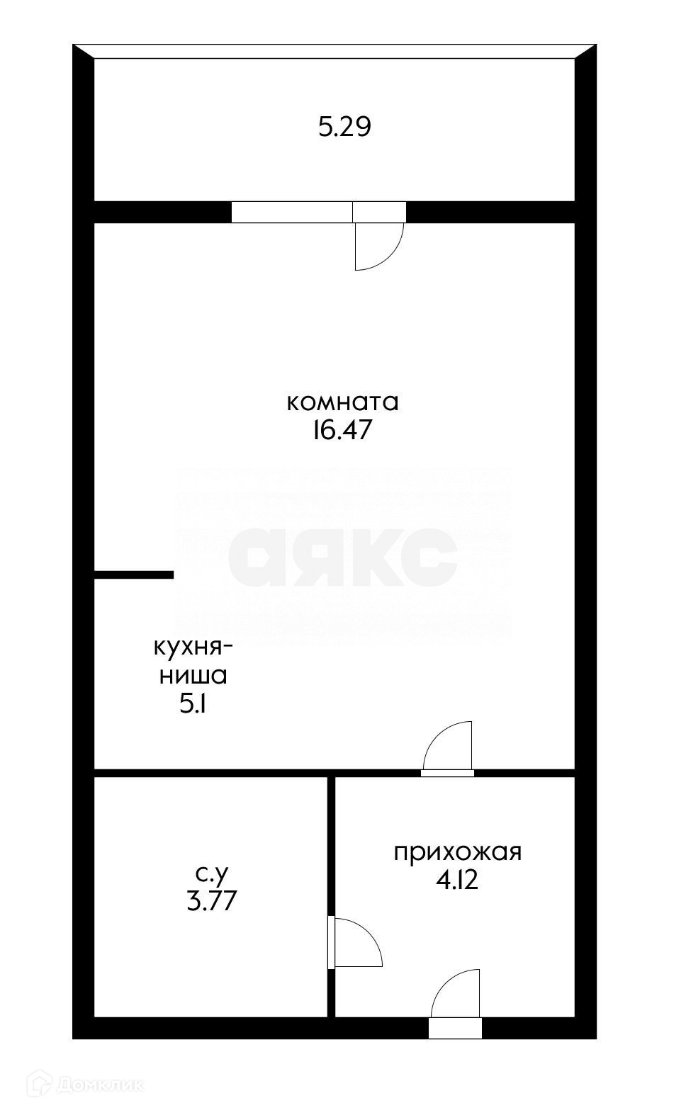 Общая площадь 29.3 м2