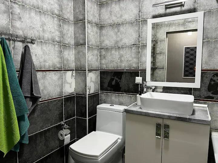 Квартира расположена в благоустроенном районе с развитой инфраструктурой. Рядом находятся магазины, рестораны, кафе, аптеки и детские площадки. Также в нескольких минутах ходьбы расположены общественный транспорт, обеспечивая легкий доступ ко всему городу.