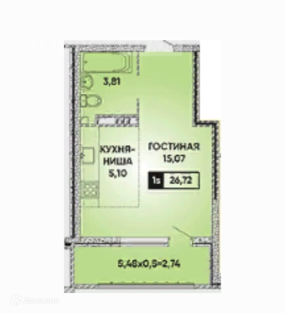 Общая площадь 26.7 м2