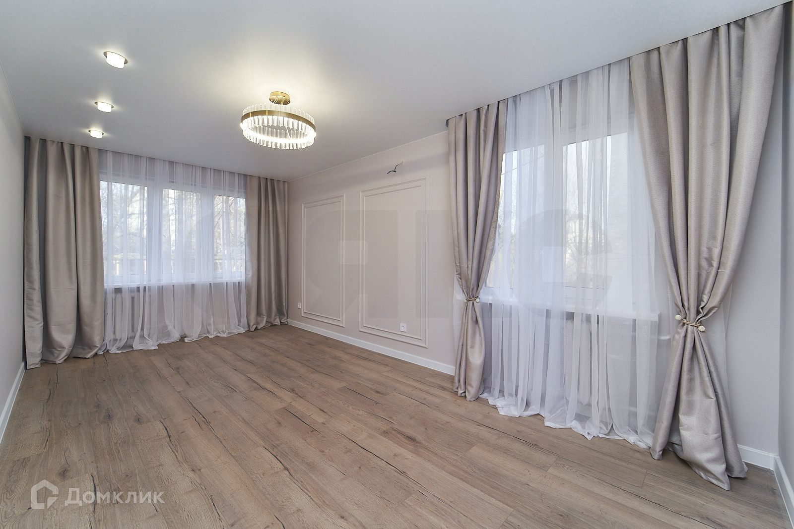 Просторная комната-гостиная с выходом на балкон. Квартира с современным ремонтом в светлых тонах.
