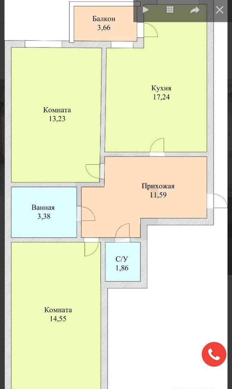 Общая площадь 61.8 м2