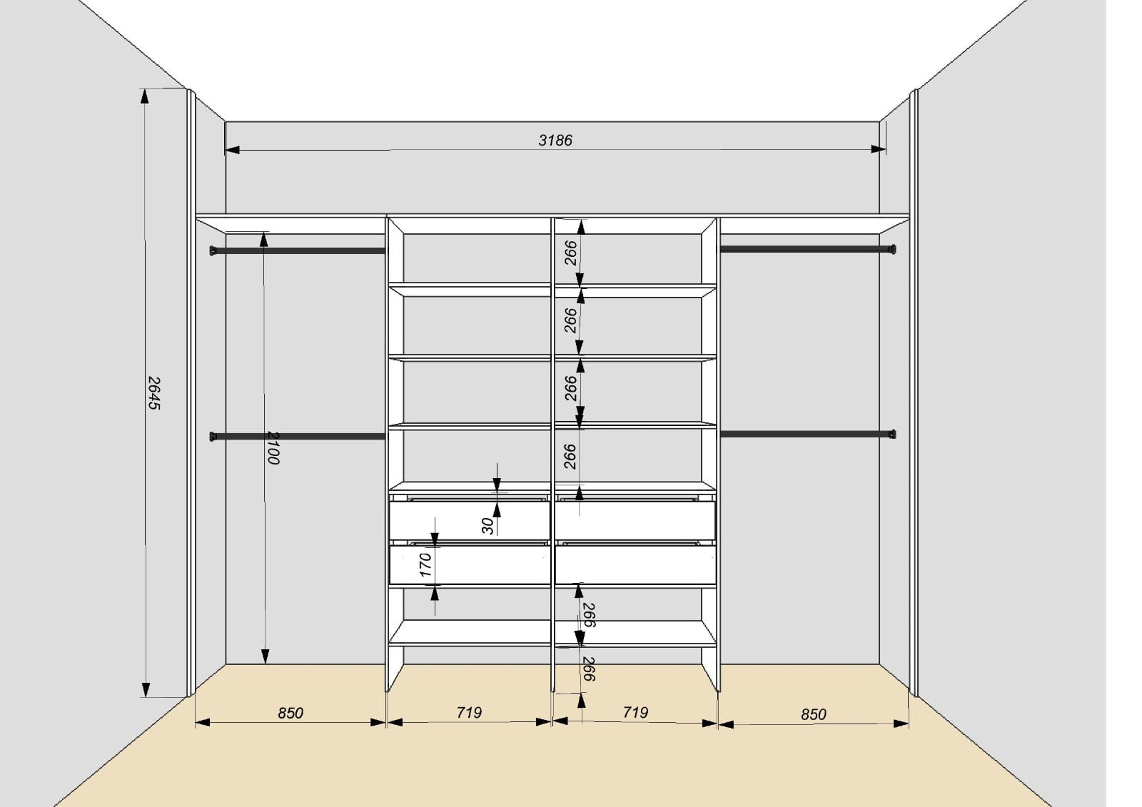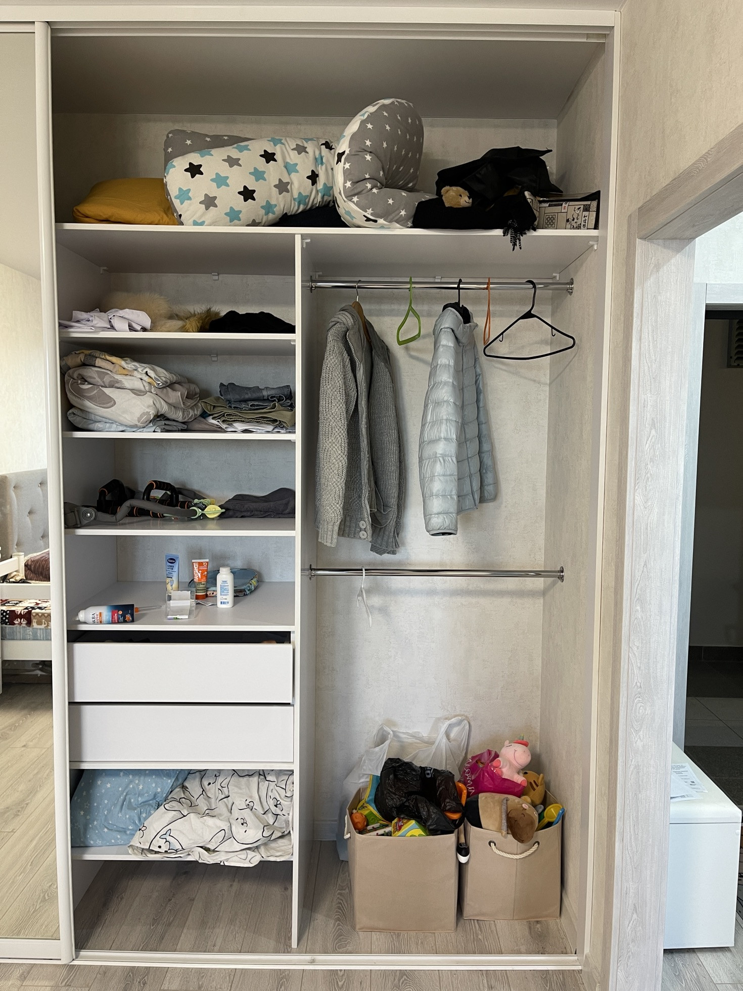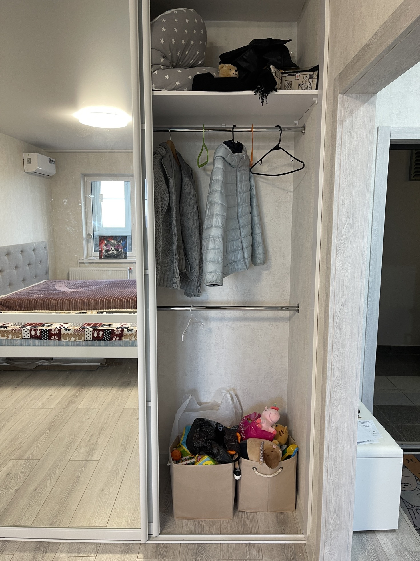 В тупике установлен встроенный шкаф на всю высоту, места очень много.