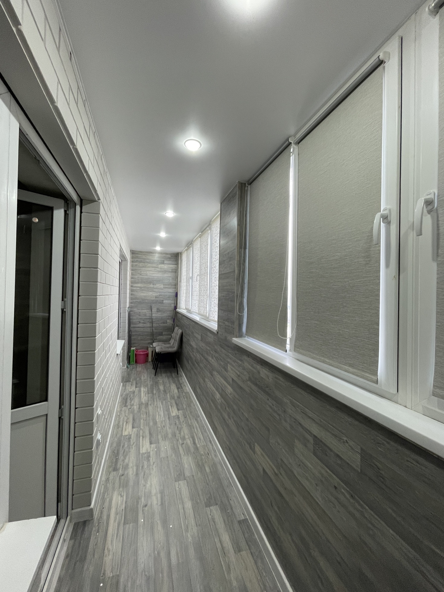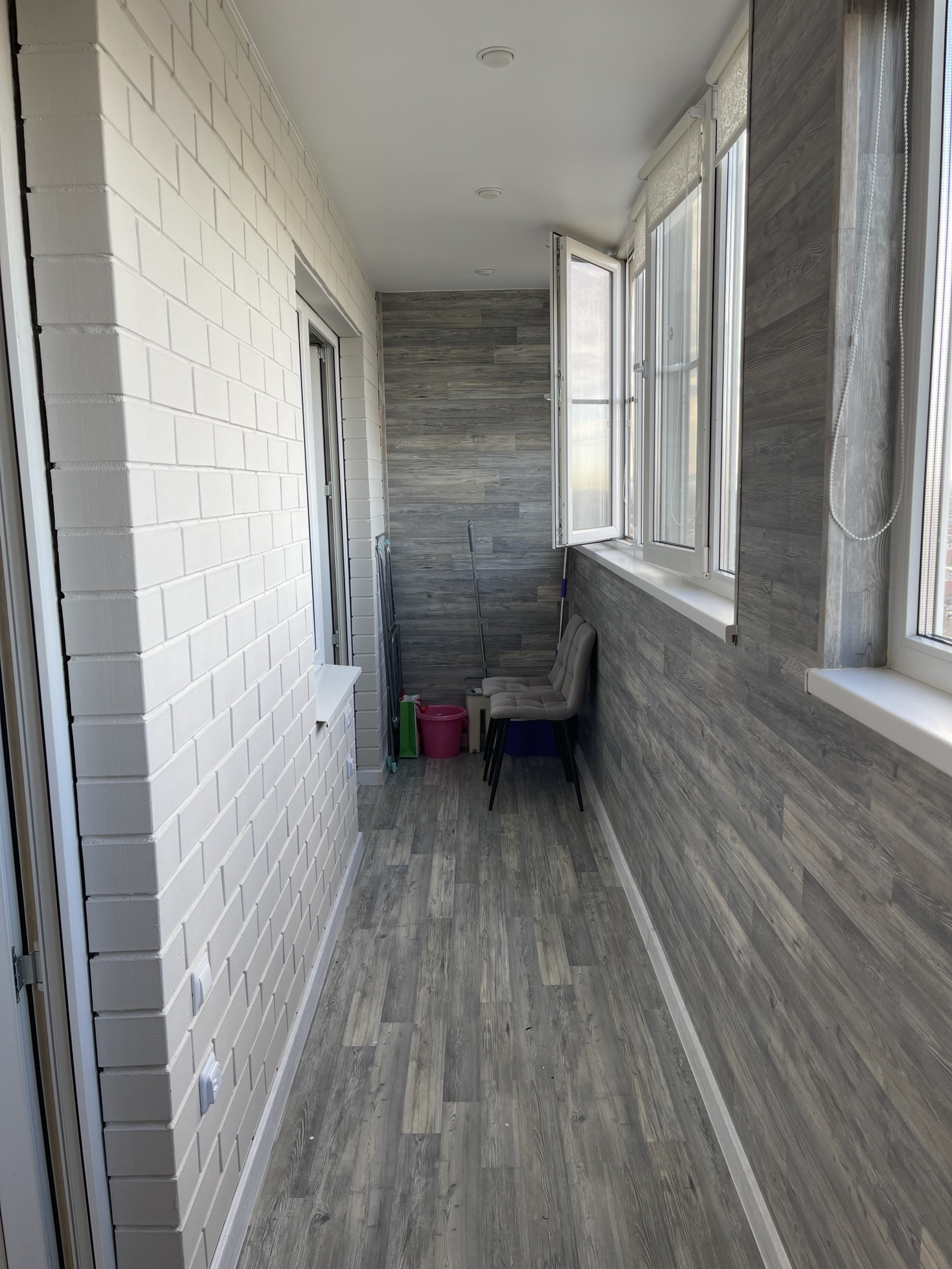 Балкон застеклён хорошими окнами (rehau), ламинат на всех стенах кроме тыловой (в квартиру), установлены тёплые полы (2 зоны - кухня и спальня), а так же утеплён со всех сторон.