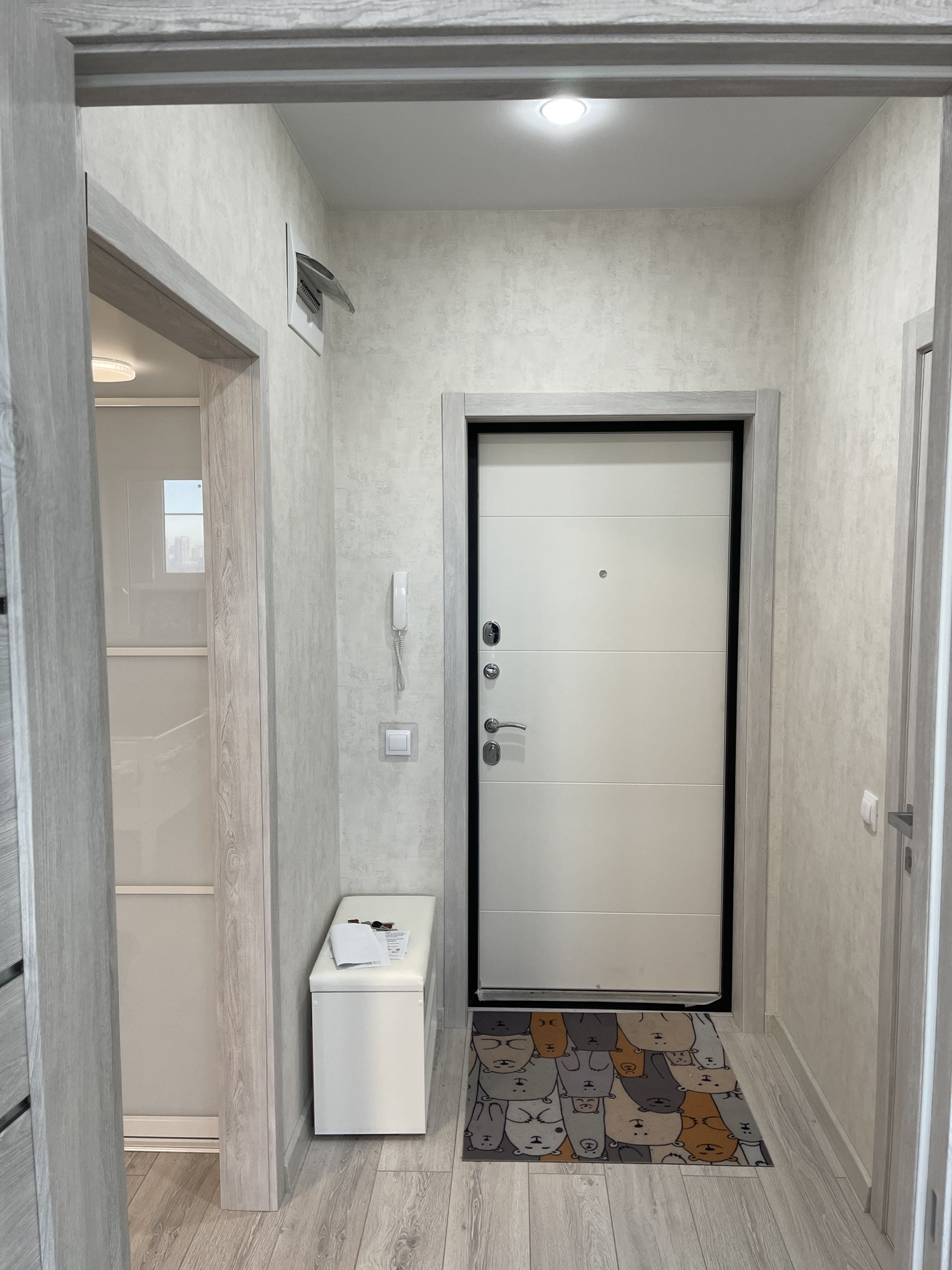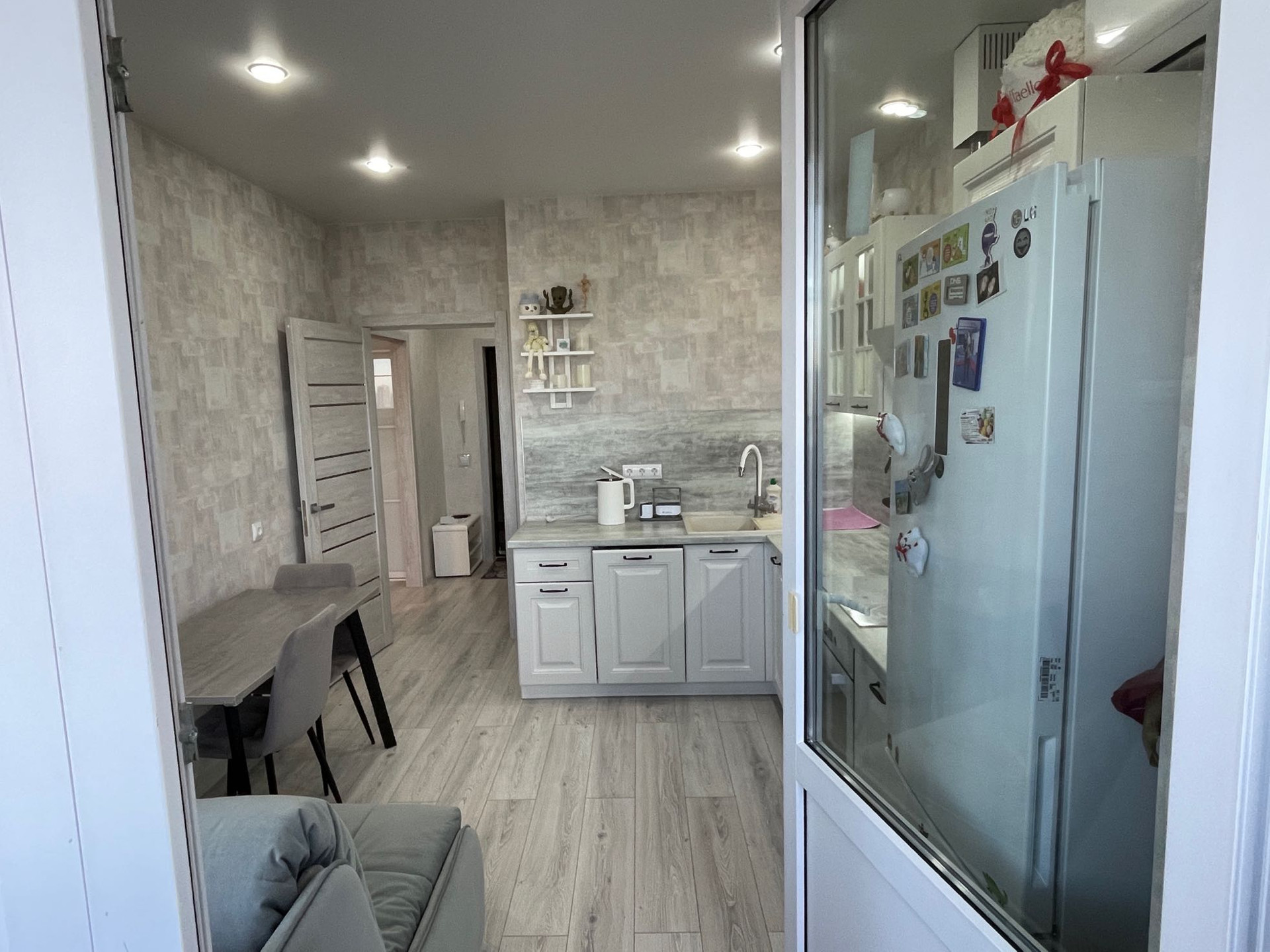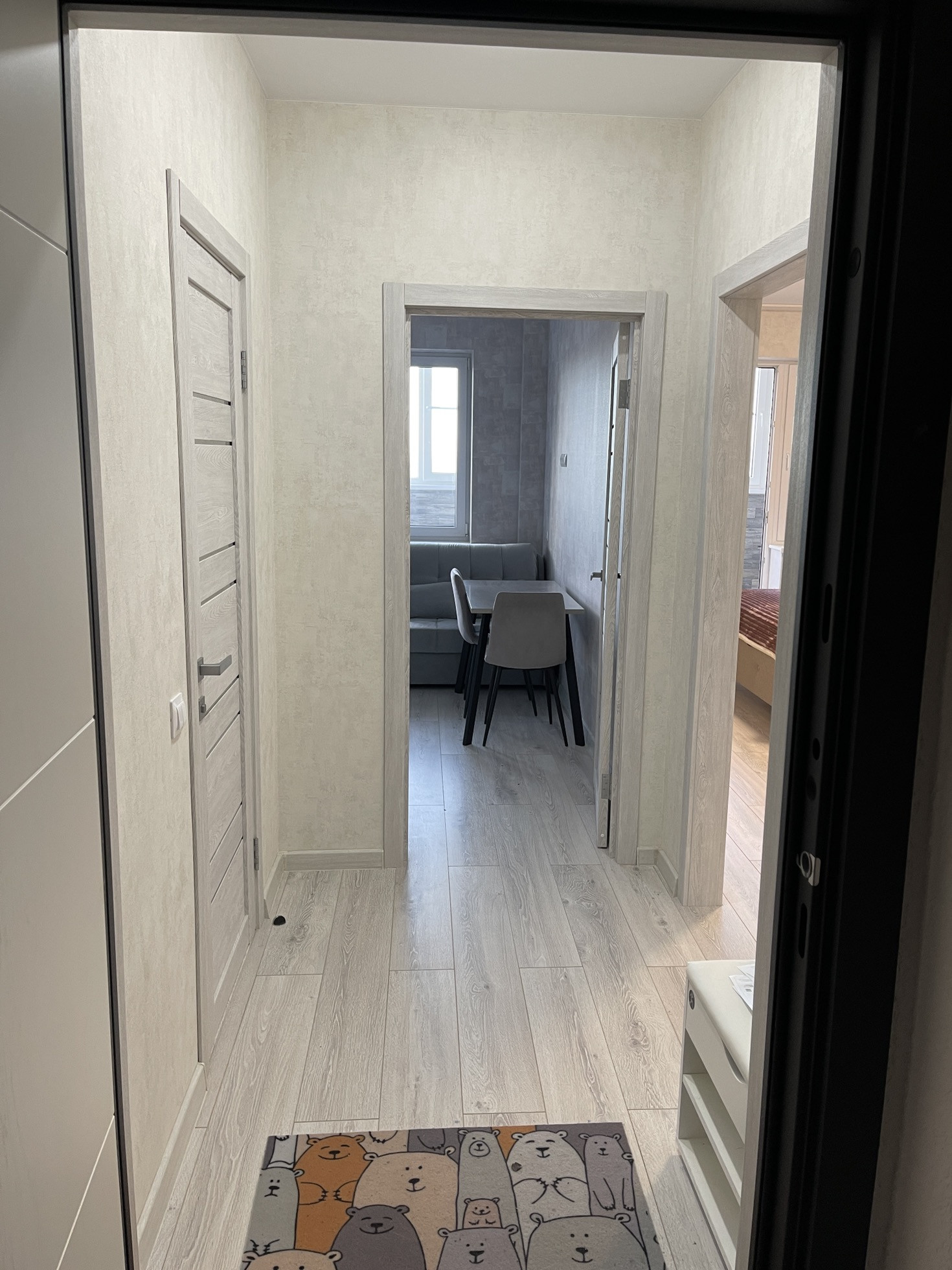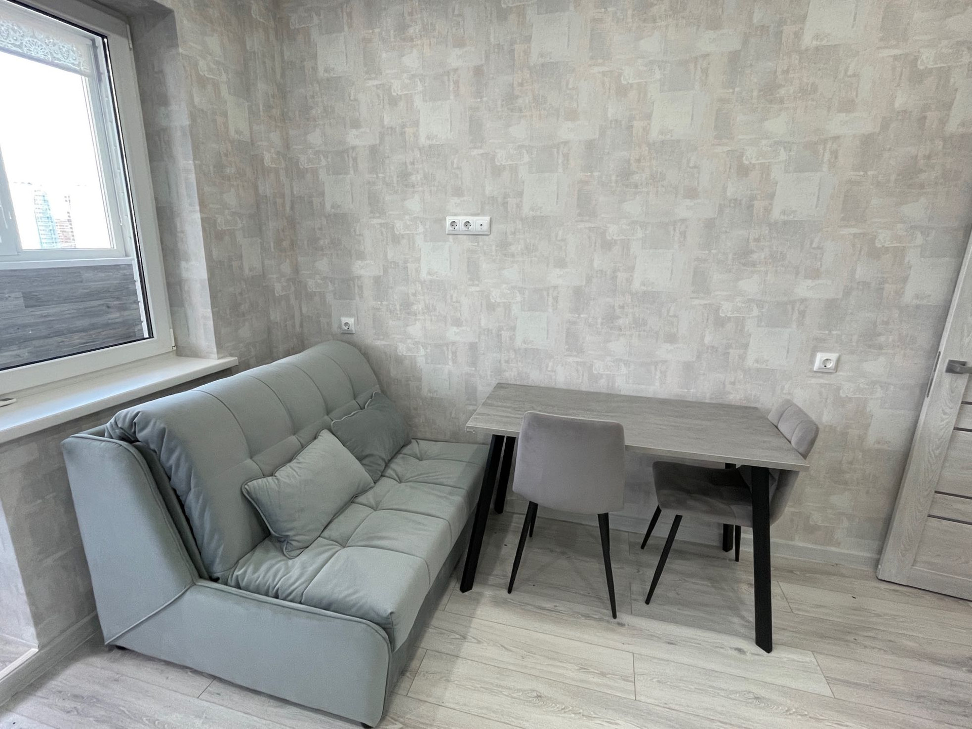 Ремонт делали для себя, жили в квартире только полгода, так как застройщик запоздал с сдачей на 3 года, сейчас однушка не актуальна для нас в связи с рождением ребёнка.