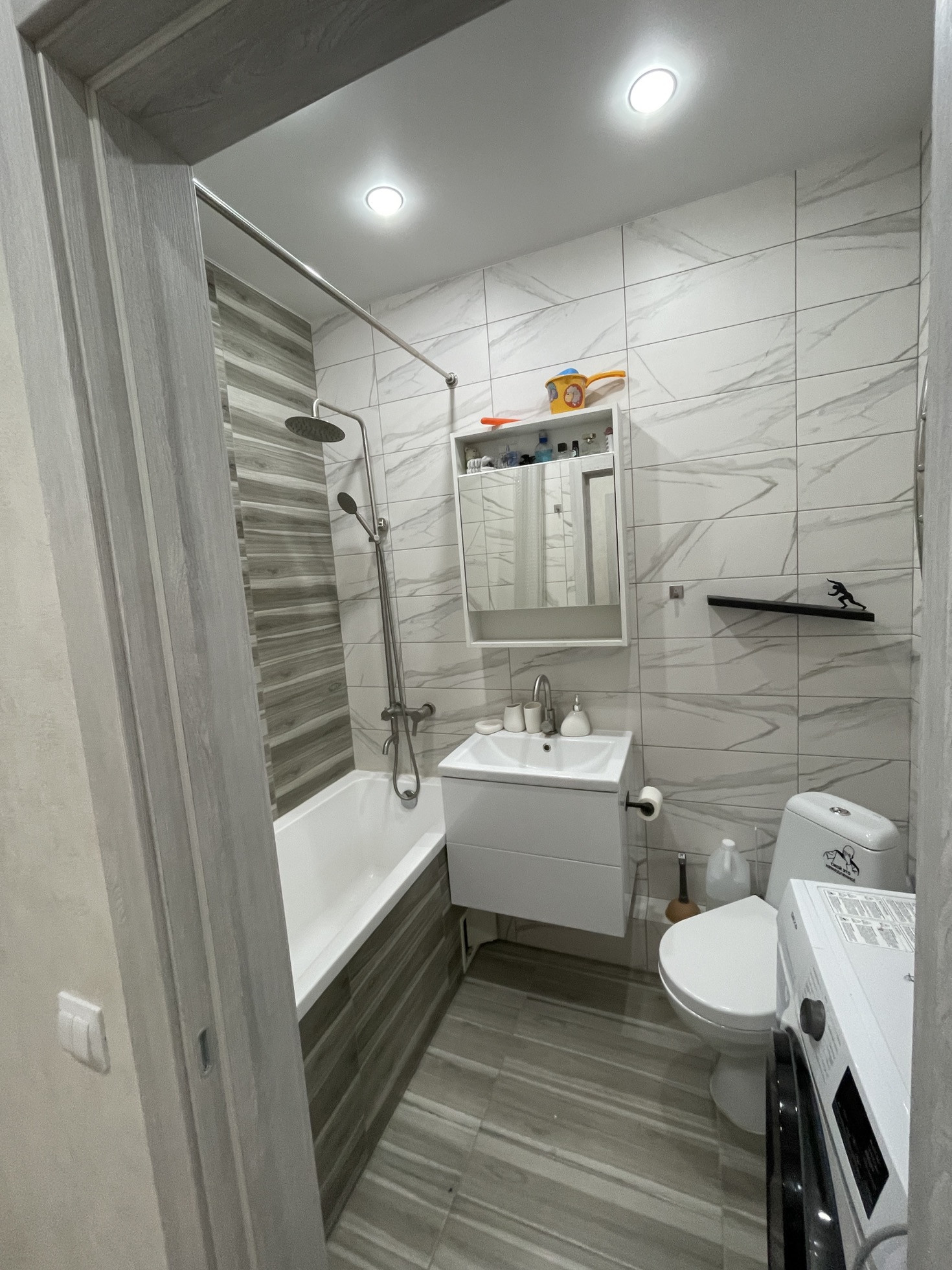 Санузел совмещенный, стиральная машина остаётся.