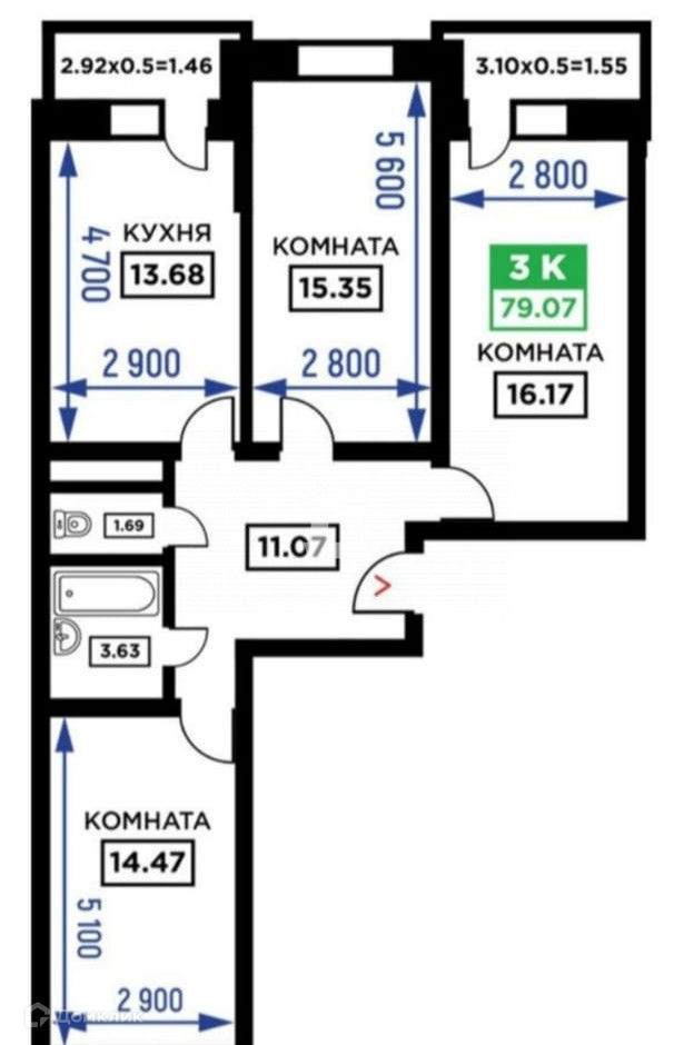 ДВА БАЛКОНА смотрят на детскую и спортивную площадку, один выход с кухни, другой с комнаты.
