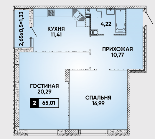 Общая площадь 63.9 м2