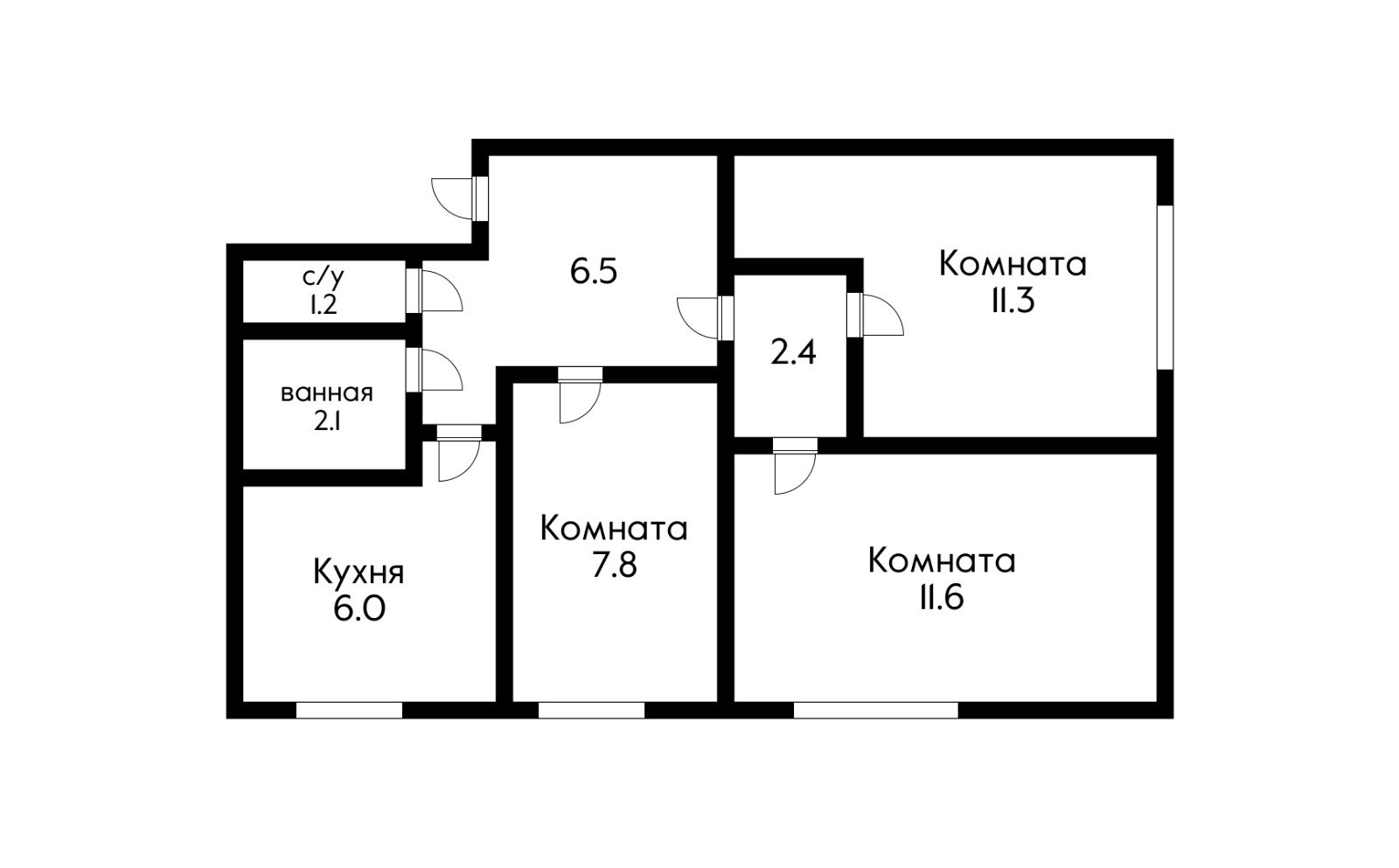 Внутри просторные 3 комнаты по 12м2  Большая прихожая, где идеально подойдет каф купе.