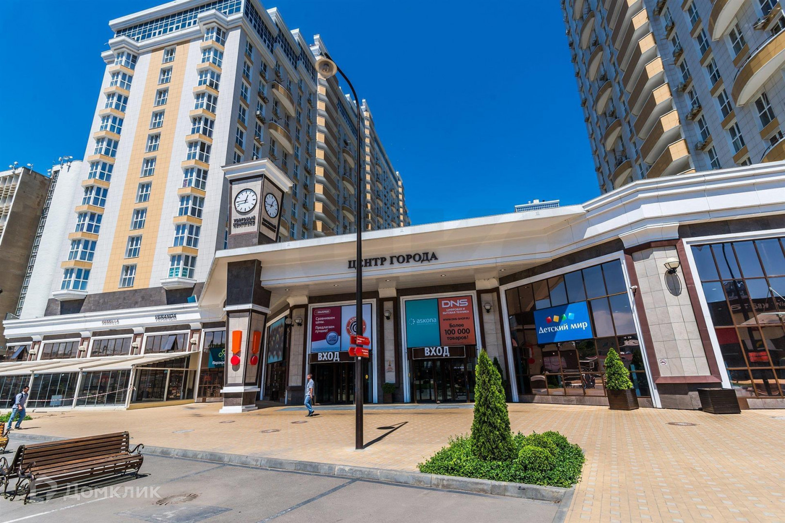 Большая территория обустроена, на первых этажах — все, что нужно для комфортной жизни горожанину: гипермаркет «Перекресток», магазины, бутики, салоны связи, «Алкотека».