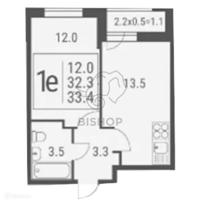 Общая площадь 33.4 м2