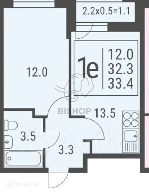 Общая площадь 33.5 м2