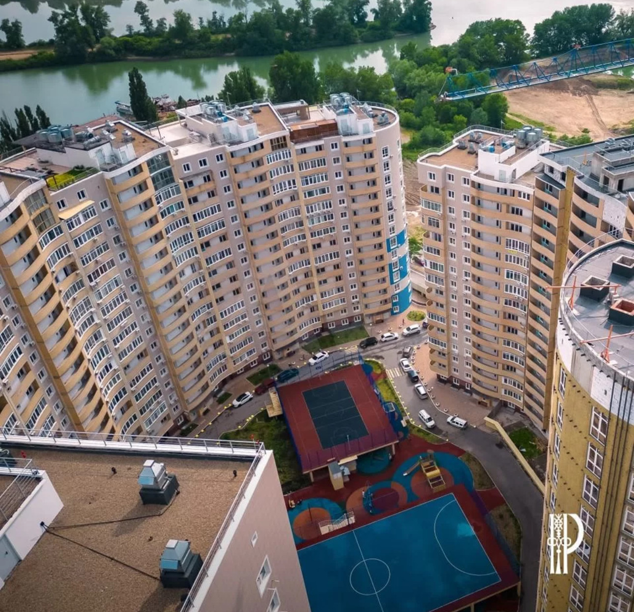 Возле комплекса протекает река Кубань, и есть пляж. До улицы Ставропольской можно дойти пешком за 10 минут или доехать на маршрутке за 5 минут (остановка рядом с домом). Возле дома есть магазин "Магнит", а также недалеко расположены школа, детские сады (на территории комплекса строится детский сад) и "Магнит".