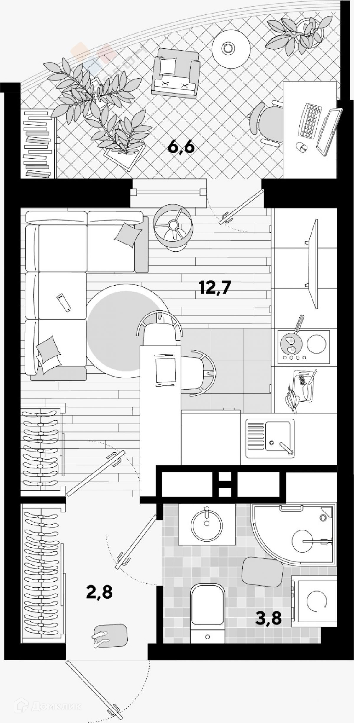 Общая площадь 25.9 м2