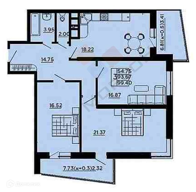 Общая площадь 99.4 м2