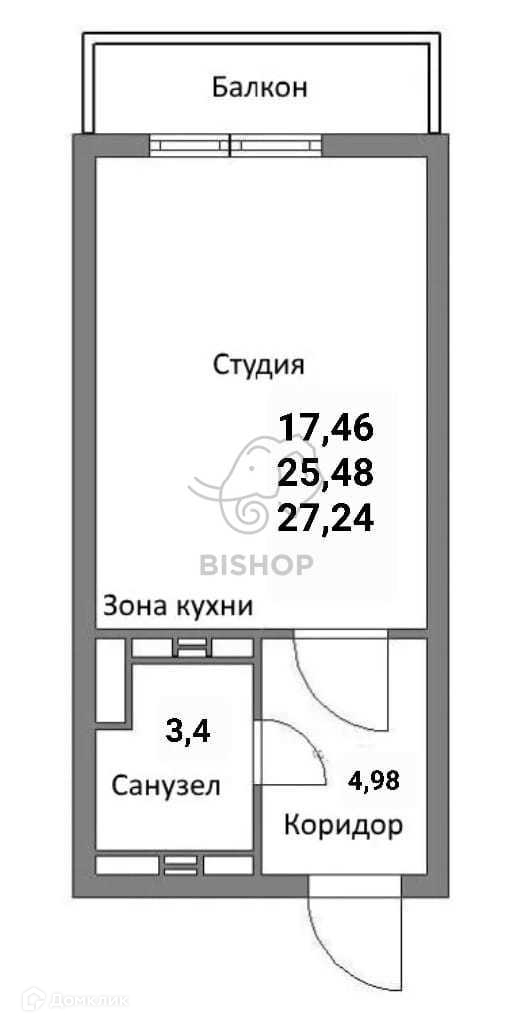 Общая площадь 27.3 м2