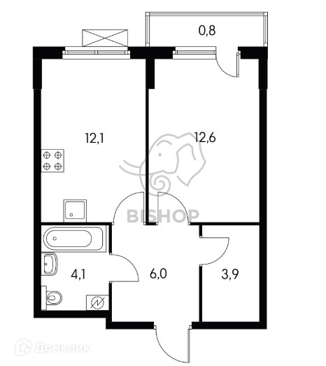 Площадь кухни 12.1 м2