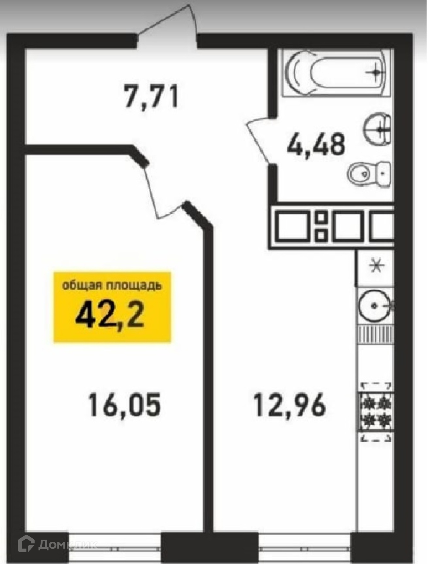 Общая площадь 42.2 м2