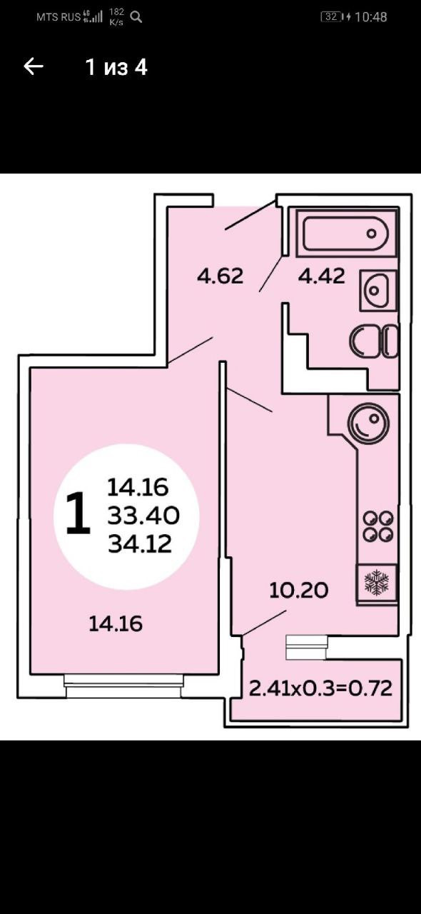Общая площадь 34.12 м2