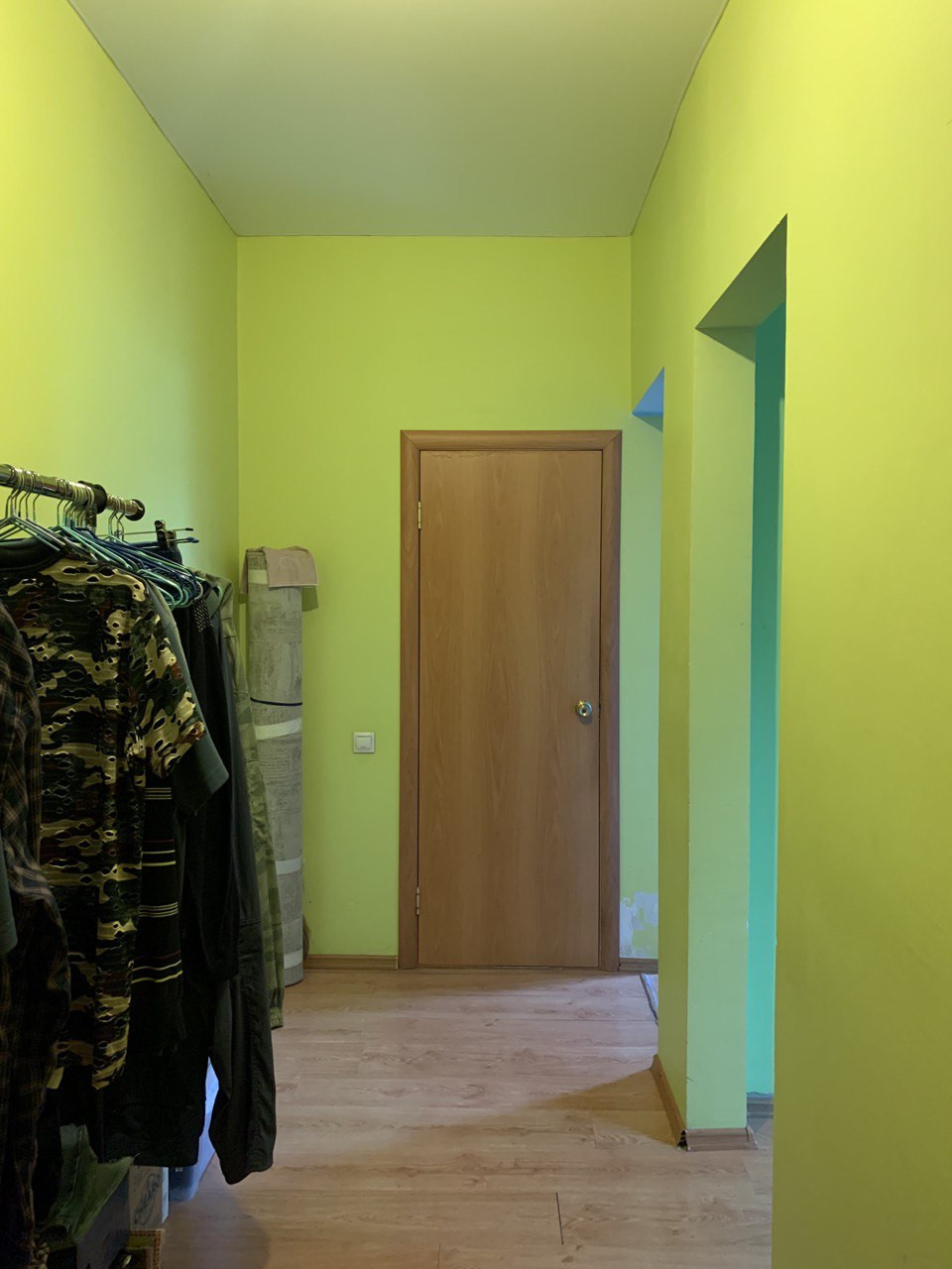 Стены оставили под покраску, если Вы не планируете капитальный ремонт, то можно подкрасить стены, произвести небольшой ремонт и заходить жить.