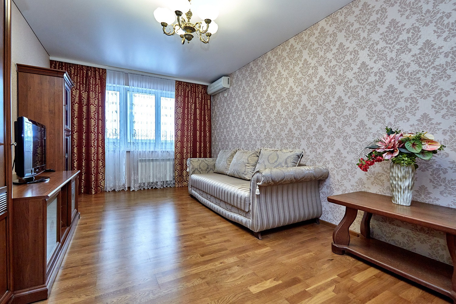 В квартире выполнен качественный и добротный ремонт, который показал себя в эксплуатации на высшем уровне. Квартира полностью меблирована, укомплектована бытовой техникой и готова к проживанию.