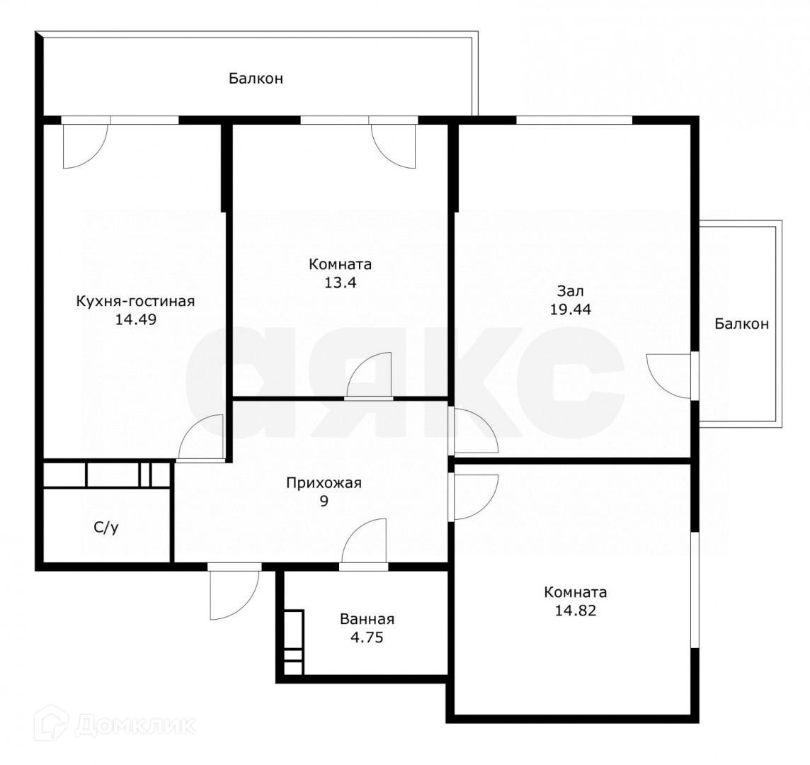 3 комнаты ,1-я ком ( S-15) ,2-я ( S-13.5) 3-я (S-19.5.)