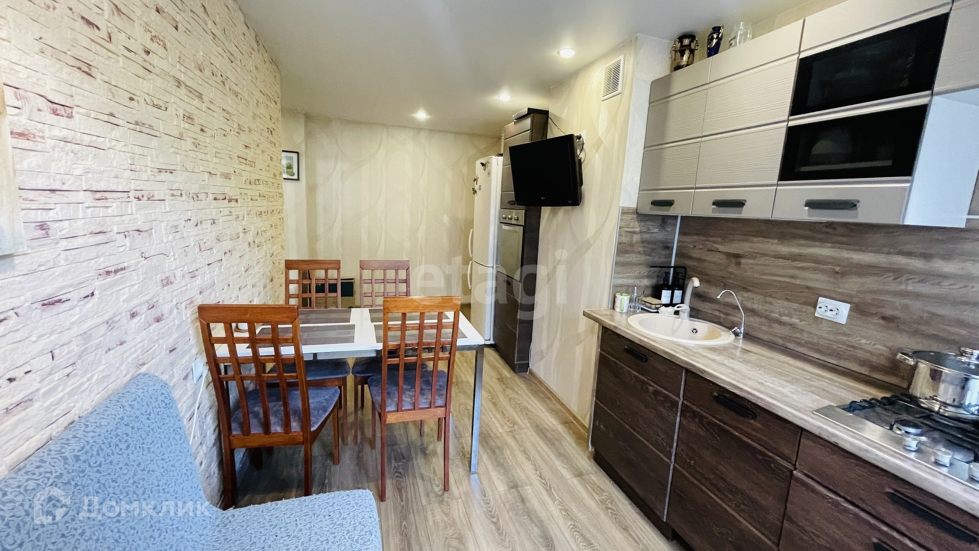 В квартире остается кухонный гарнитур с плитой и духовым шкафом.