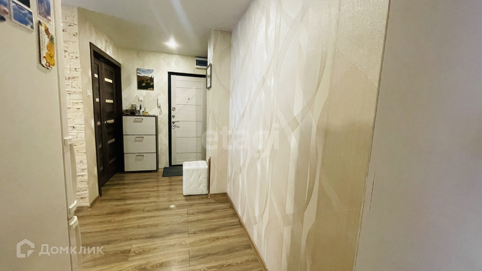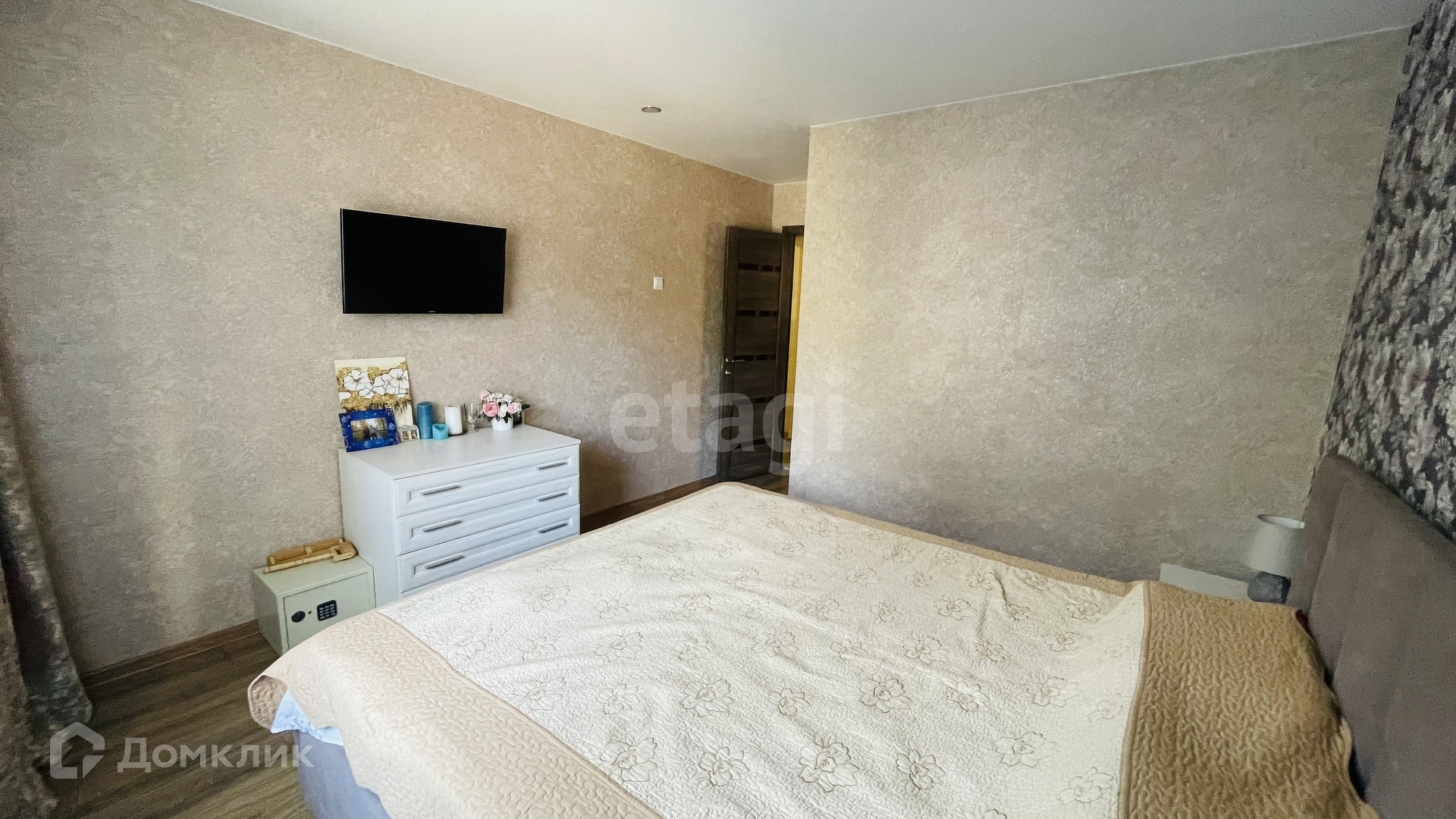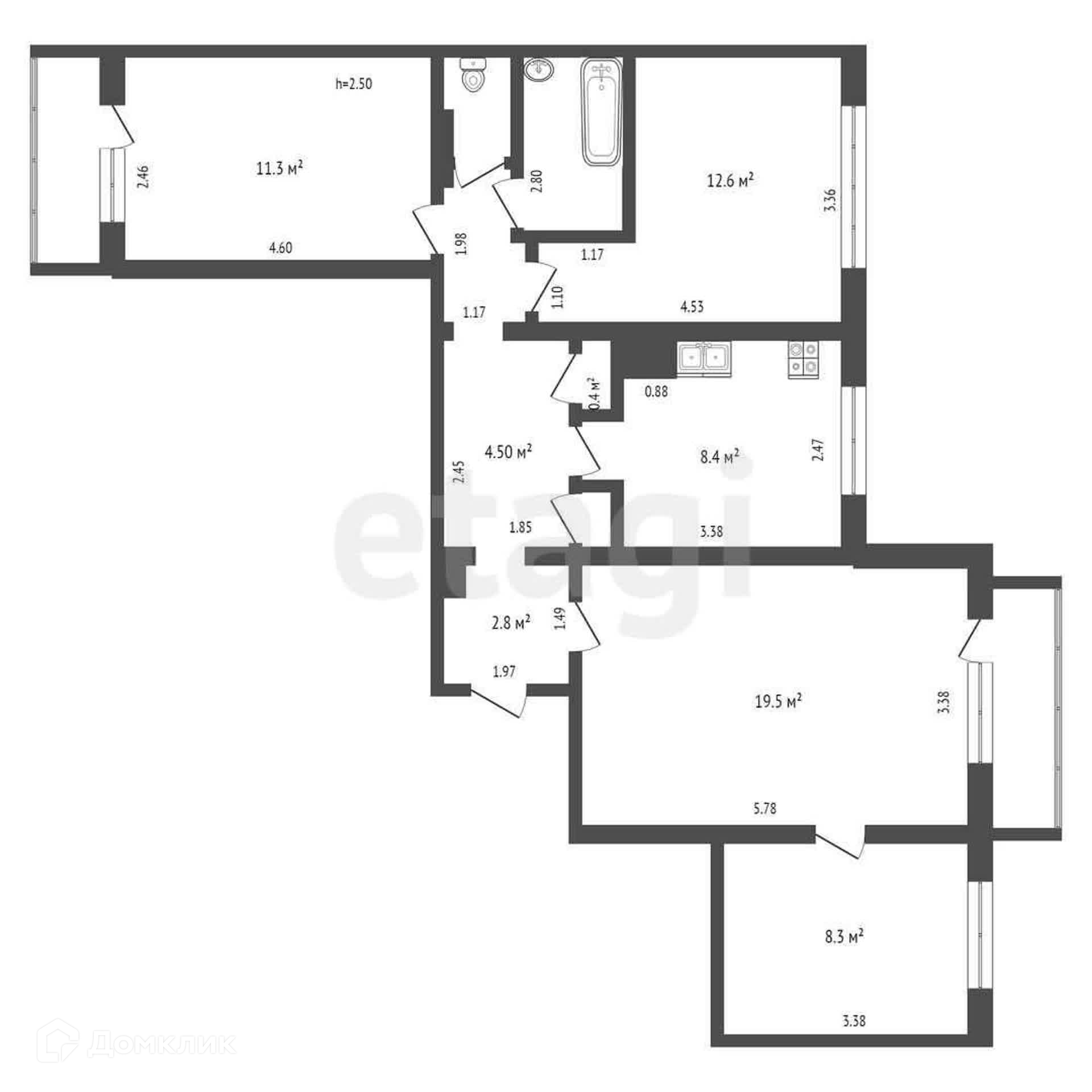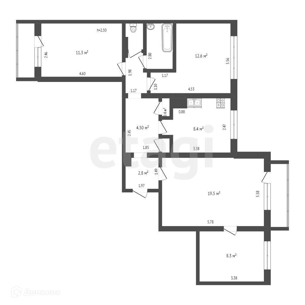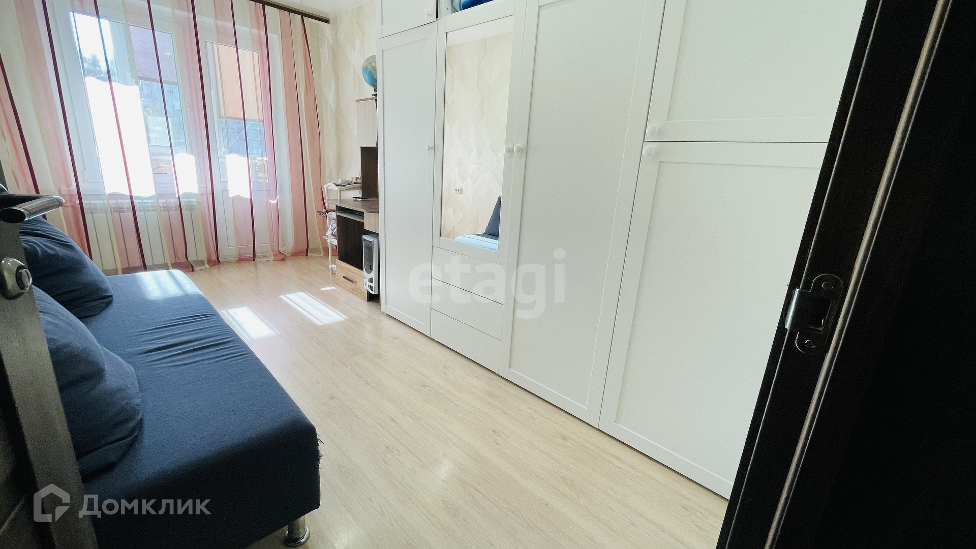 4 комнаты + кухня 12 кв. м., застекленные балкон и лоджия, отгороженный тамбур с вместительным шкафом.