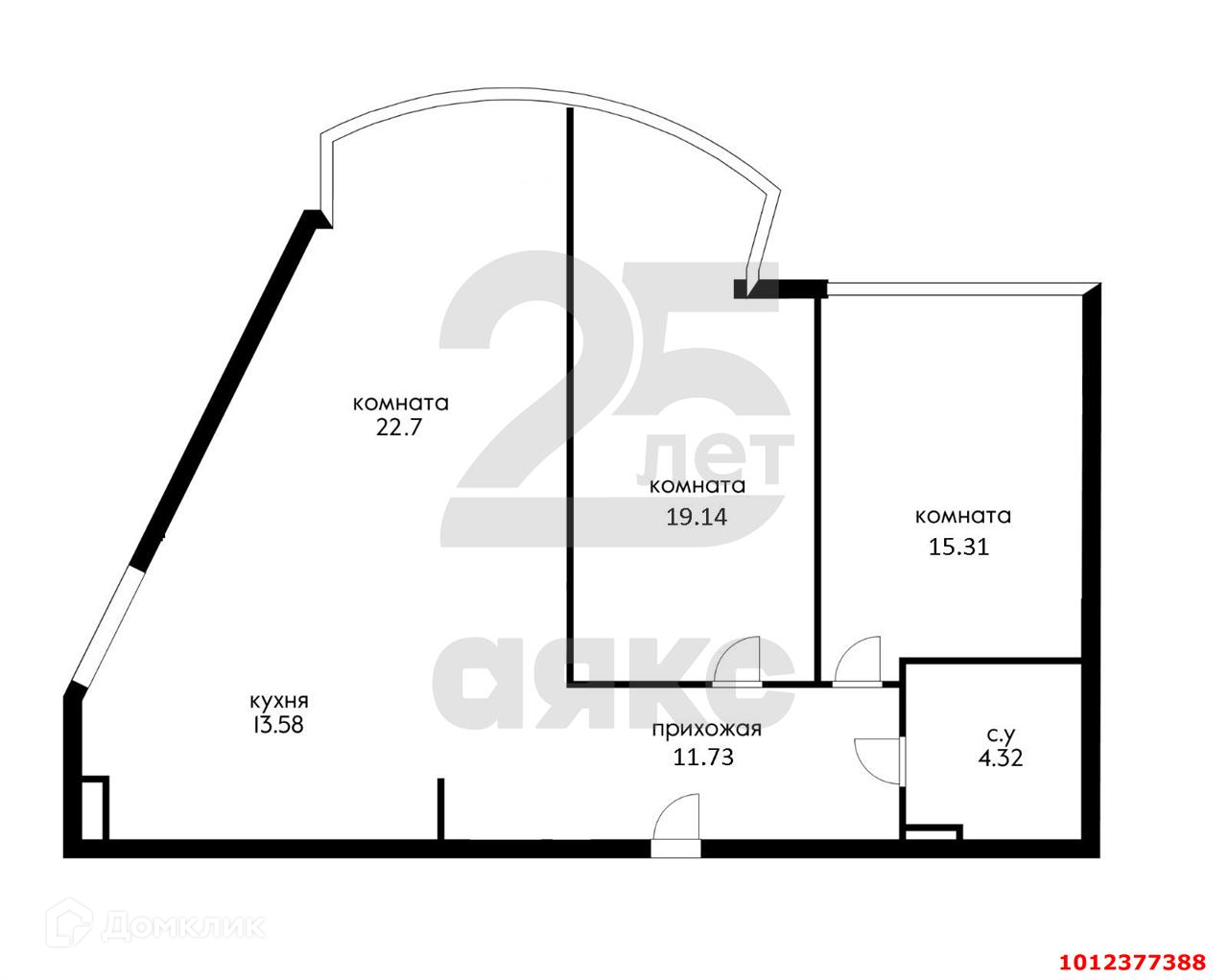 Жилая площадь 57.15 м2