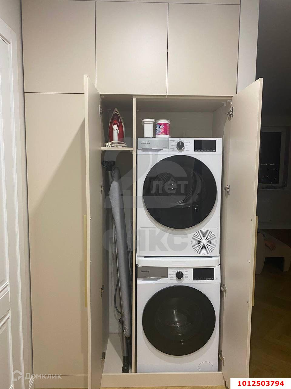 В коридоре шкафы, в одном из них стиральная и сушильная машина.