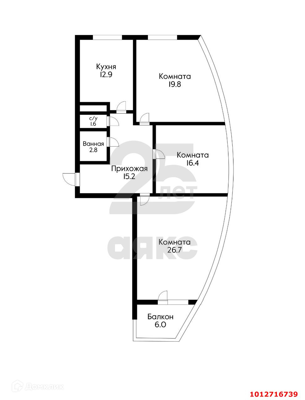 Балкон, лоджия 1 балкон